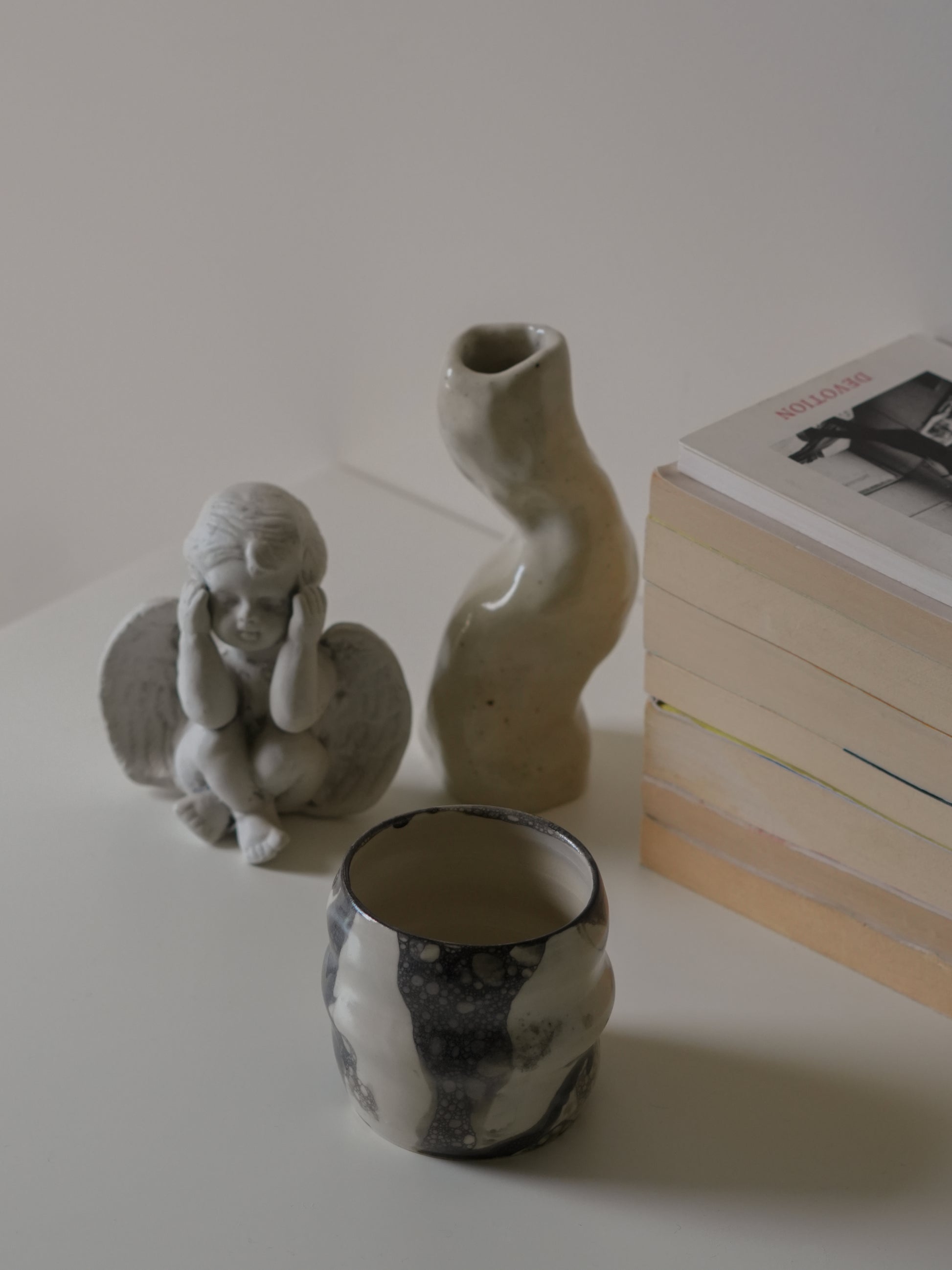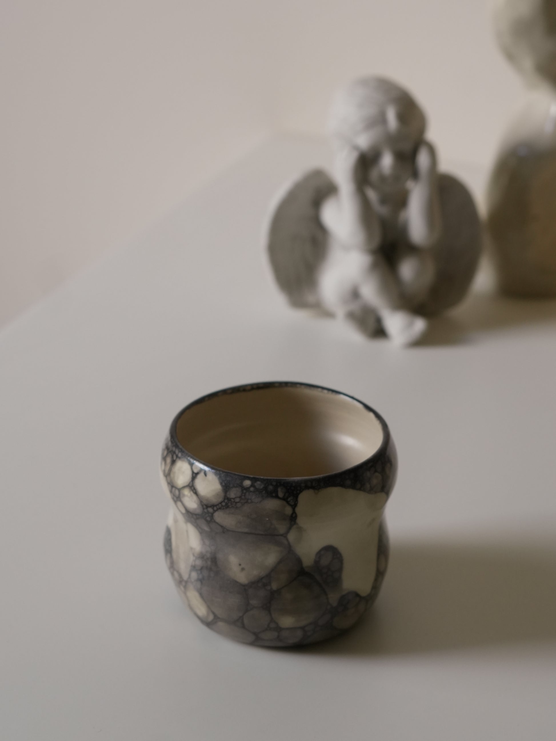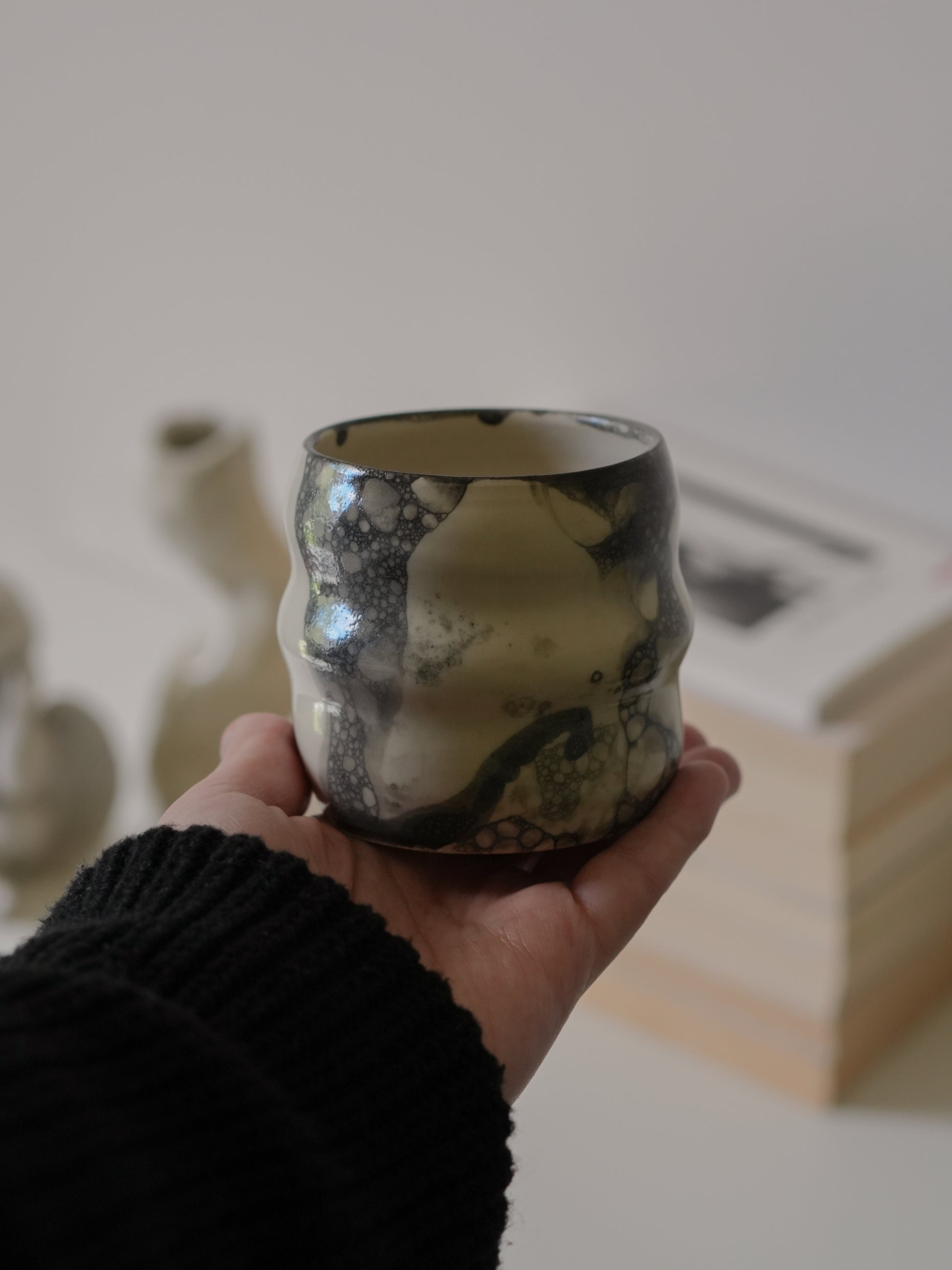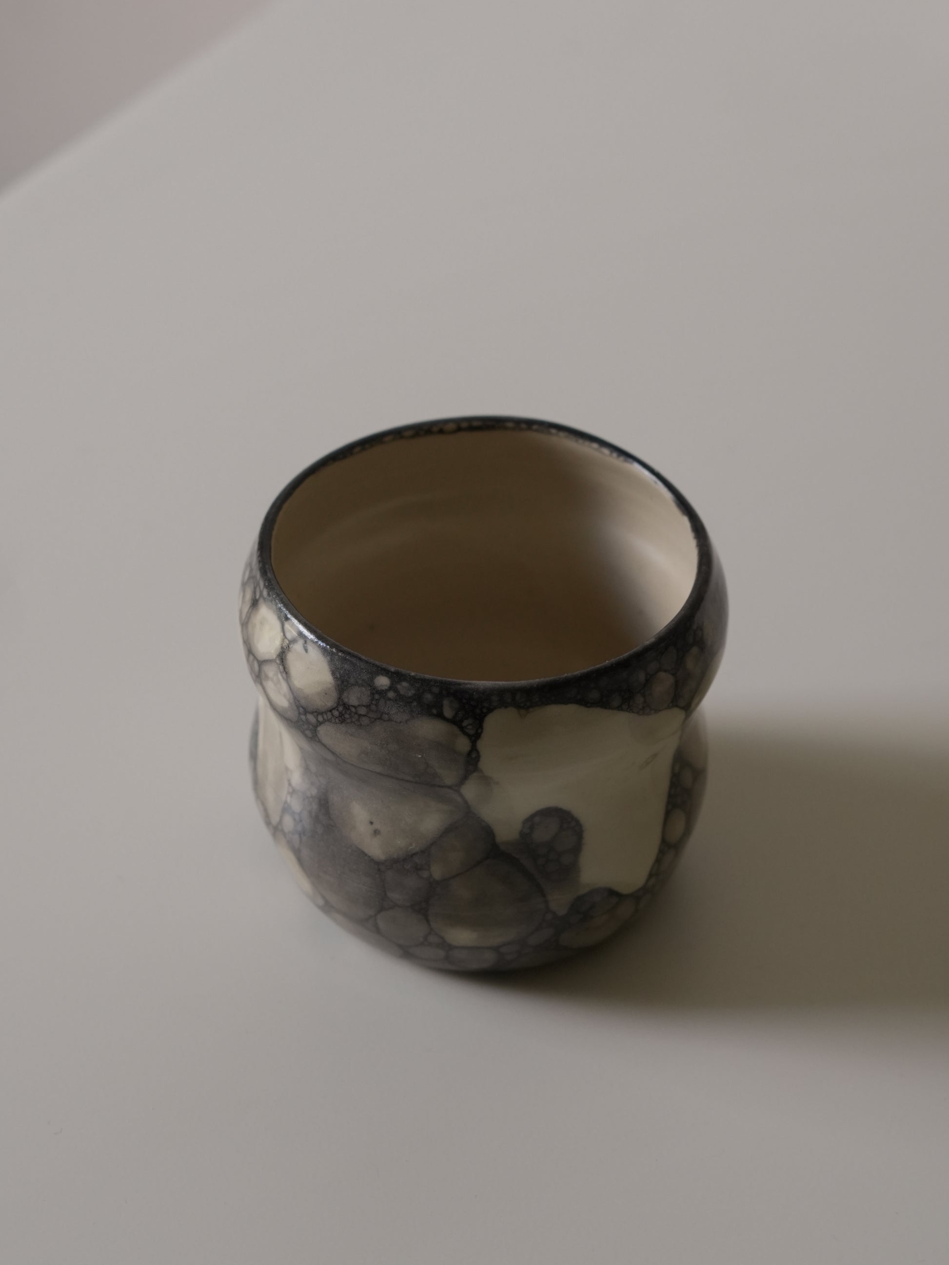 The Cloudy Cup features a soft, bubble-shaped form paired with a smoky bubble glaze.