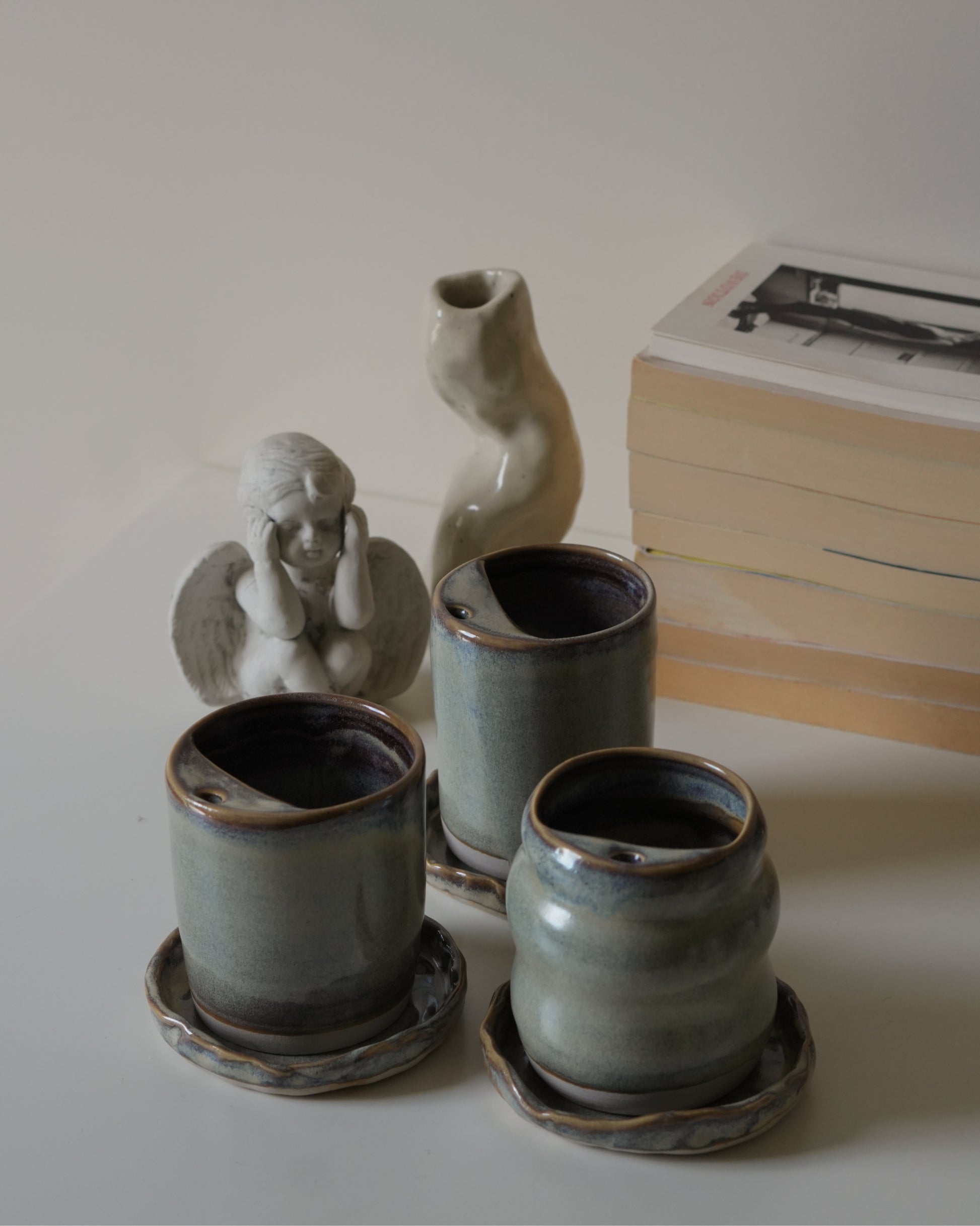 All pieces are crafted from stoneware clay and fired to 1280°C, making them durable and suitable for everyday use.